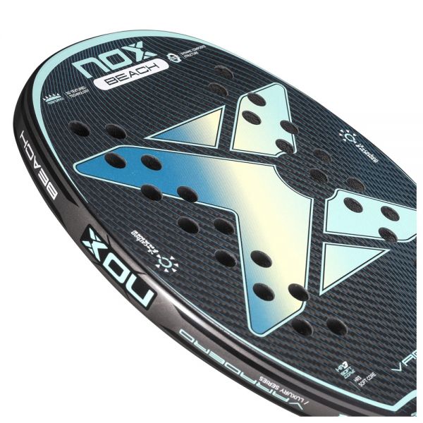 Juegos polivalentes con la nueva Pala Beach Tennis Nox Luxury ideal para la cancha brindándote un equilibrio entre control y potencia durante tus juegos avanzados.