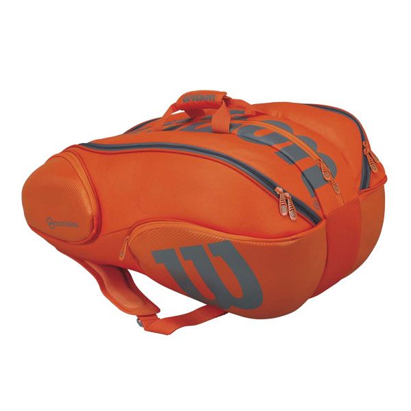 Diseado en color naranja para marcar tendencia en la pista de tenis. Con este raquetero Wilson de mxima capacidad puedes llevar hasta 15 raquetas Wilson. Hazte con l y siente la mayor comodidad en tus desplazamientos a la cancha.