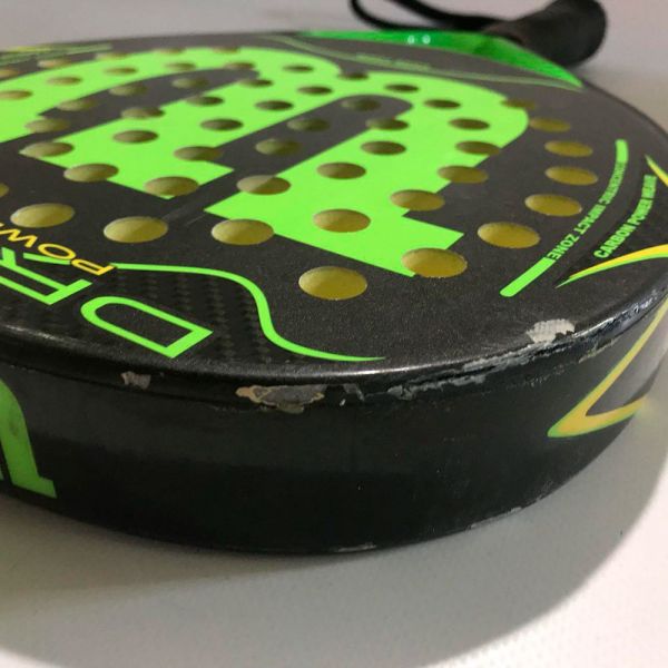 Siente la potencia en cada bola con la Wilson Drone Power Lite, una pala en forma de diamante. Su balance madio, distribuye el peso favoreciendo un buen control. Recomendada para jugadores expertos o intermedios. Esta pala de segunda mano, cuenta con varios desconchones en la zona del marco y algúnos leves arañazos en las caras. Este desgaste estético está producido por el uso, pero no afecta al rendimiento de la pala.