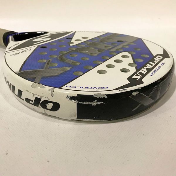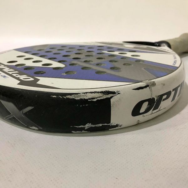Pala de segunda mano en buen estado, auqnue cuenta con alunos arañazos, roces y desconchones en las caras y el marco. Un desgaste estético que no afecta al rendimiento.