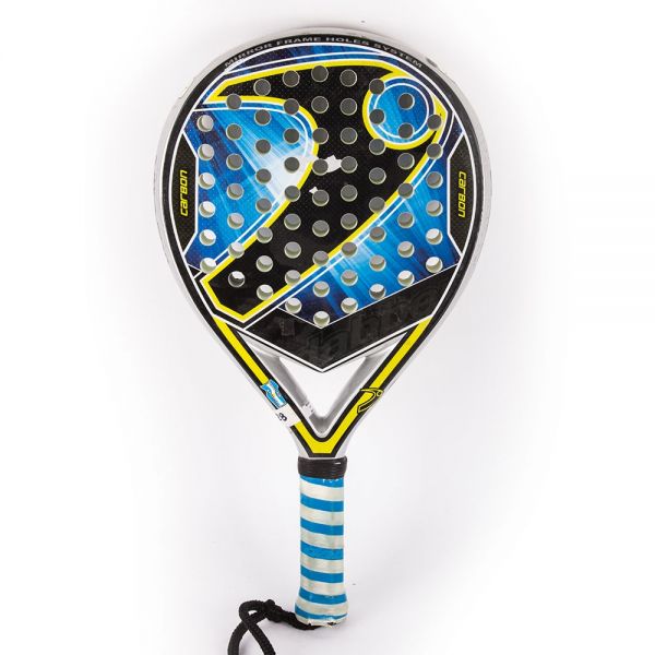 En cuanto a la pala, esta nos presenta un pequeño desconchón en el marco superior, y algunos rallajos en las caras, que bajo ningún concepto impedirán un desarrollo normal de tu estilo de juego