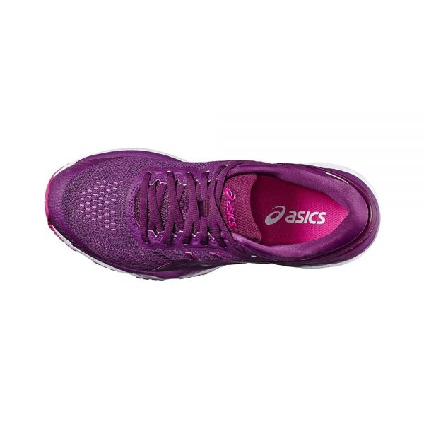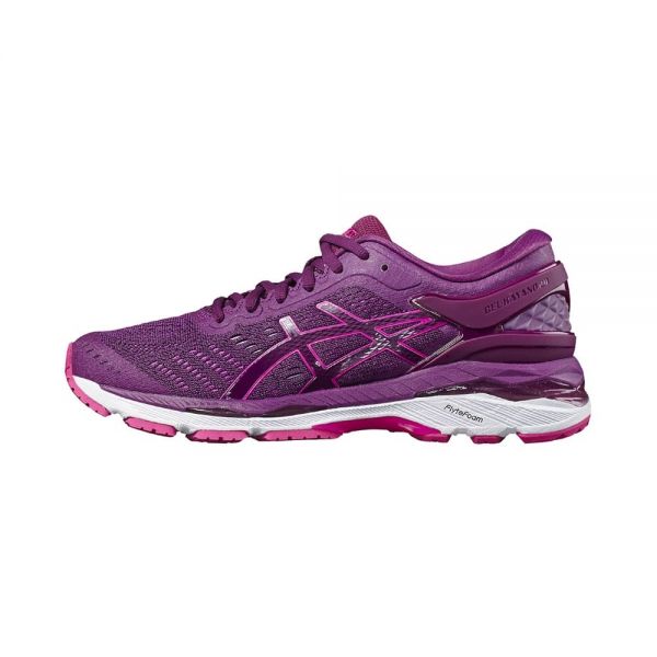 Asics Gel Kayano 24 para mujer en color lila son unas zapatillas de running con altas prestaciones técnicas y ajuste inmejorable al pie. La opción de garantías y máxima comodidad para llevar tus pies bien sujetos mientras practicas tu deporte favorito, correr por asfalto.