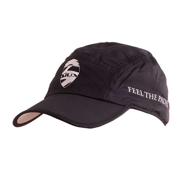 Gorra en color negro, ligera y fabricada con materiales de calidad, tanto en el exterior como en el forro, que permiten proteger del sol y el sudor durante los partidos de pdel. Para mayor comodidad, esta gorra Siux se puede ajustar a la talla mediante velcro en la parte trasera.