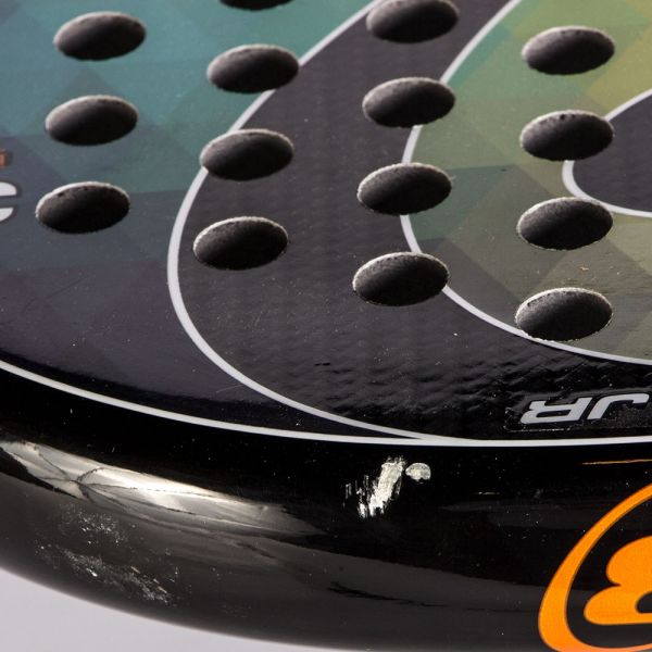 La Bullpadel Iris Jr es una pala pde control para que los niños empiecen al jugar al pádel y saquen el máximo partido a su potenica. Creada con materiales resistentes y ligeros de gran calidad. Esta pala de segunda mano, esta en buen estado. Tiene roces en las caras y el marco, con algunos arañazos. Imperfecciones estéticas producidas por el uso, que no afectan al comportamiento en pista.