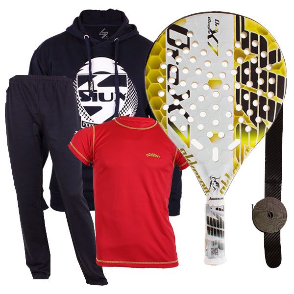 Descubre el mayor ahorro con NewPadel. Pack Akkeron oro blanco X7 con equipación completa y dos accesorios para jugar al pádel con las mejores prestaciones. Pala ideal para jugadores de nivel avanzado.