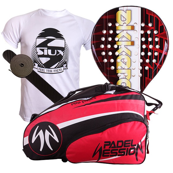 Pack de pádel Akkeron que incluye cinco productos de primera calidad y con el que conseguirás un ahorro excepcional en tu bolsillo. El principal artículo de este pack es la pala Akkeron Oro Burdeos X6, de gran combinación potencia-control.