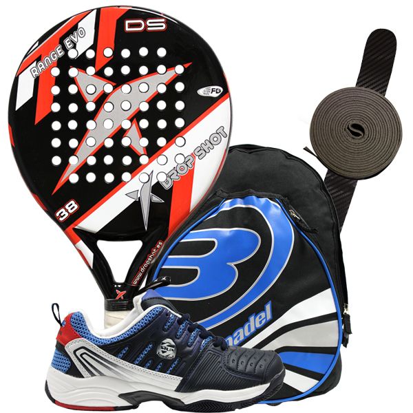 PACK DROP SHOT RANGE EVO, ZAPATILLAS SIUX FURTIVE Y MOCHILA BULLPADEL.