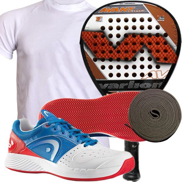 Pack formado por la pala Varlion Avant Texalium, zapatillas Head y camiseta Siux, calidad para nuestros partidos de pdel