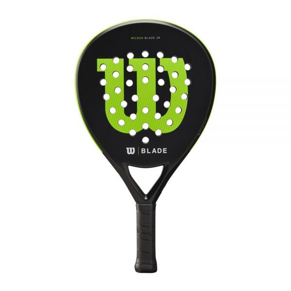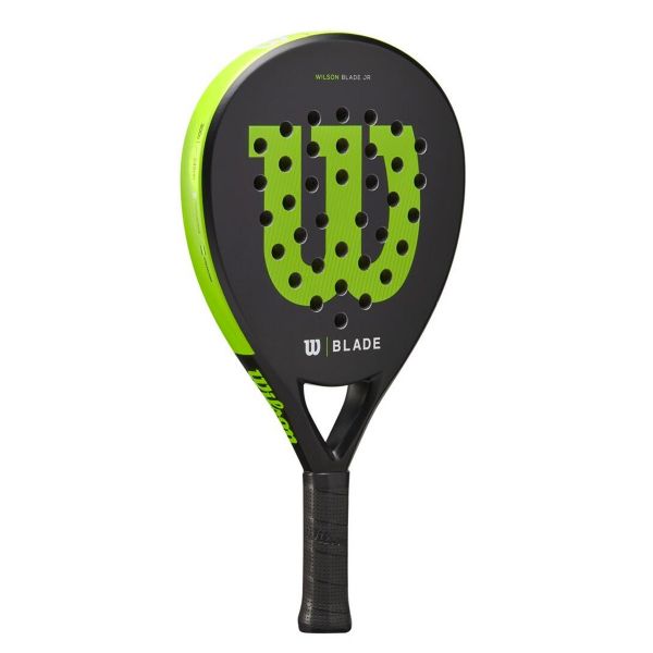 Facilidad de movimientos gracias a los materiales ligeros de esta nueva pala de pádel Wilson Blade Junior V2, diseñada en forma lágrima y balance medio.