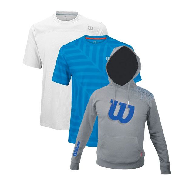 Esta sudadera Wilson con capucha es muy confortable y cálida para vestir en tu día a día o antes o despúes de hacer deporte. Junto a la chaquetilla estas dos camisetas deportivas para jugar al pádel o al tenis e ir cómodo.