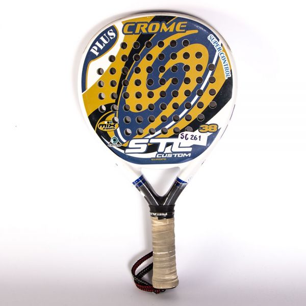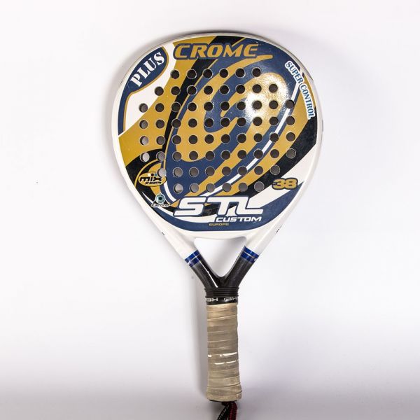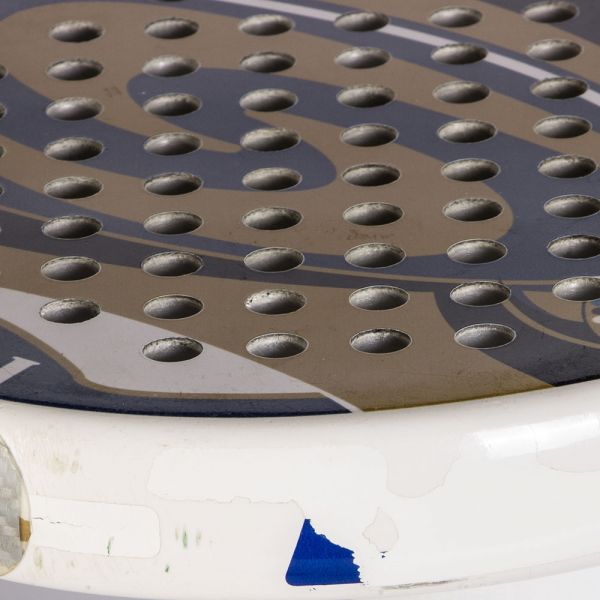 La Steel Custom Crome Mix es una pala de control, con excelentes prestaciones y materiales de calidad. Las caras estan realizadas en fibra de vidrio para aportar un punto flexible. Esta pala de segunda mano, ha sido usada, por lo que cuenta con algunos desperfectos estéticos que no afectan al rendimiento y prestaciones de la pala. Tiene arañazos pequeños en las caras y el marco, ausencia de pintura en partes del marco.