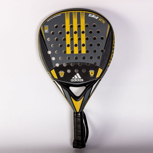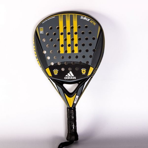 La adidas Zukur Attk es una pala de alto rendimiento para jugadores expertos o intermedios con un estilo de juego potente, basado en el ataque. Fabricada en forma de diamante con goma EVA Soft en el núcleo. Una pala de segunda mano sin apenas uso. Tiene algún arañazo leve en las caras y el marco, un desgaste estético que no influye al rendimiento.