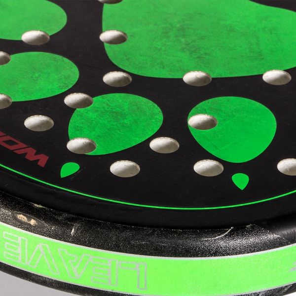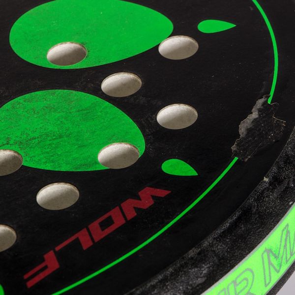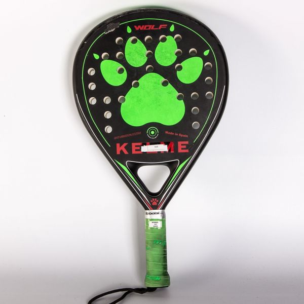 La pala Kelme Wolf es un modelo ideal para un juego polivalente y está pensada para jugadores con alto nivel o que sean profesionales. Esta pala tiene desconchones en la zona de las caras y rozaduras y arañazos en el marco, debido al uso.