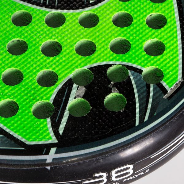 Consigue el máximo control en la pista con la fabulosa Dabber Carbon 2017, una pala de control con un diseño moderno en color negro y verde. Recomendada para jugadores defensivos con un nivel medio alto en pista. Excelente salida de bola, gracias a su goma EVA en el n´ñucleo.