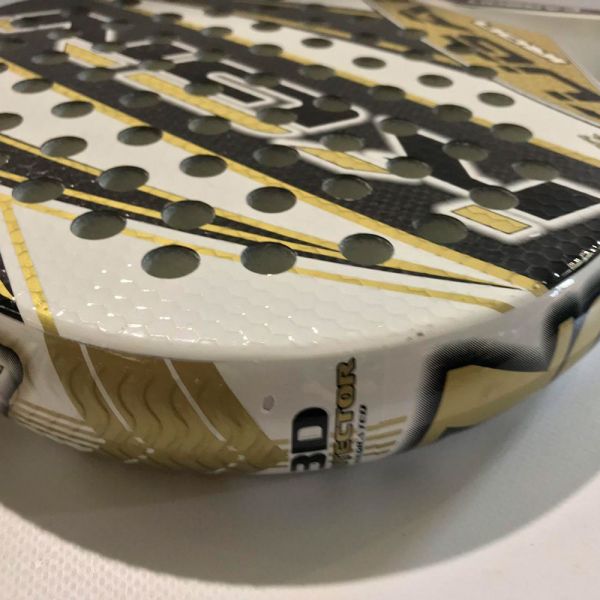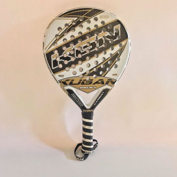 La Kugan Iron es una de las palas más destacadas de la marca, por su excelente equilibrio entre potencia y control. Las caras poseen un acabado rugoso para mayor efecto en el bola. Esta pala ha sido usada, por lo que es de segunda mano. Se encuentra en buen estado, solo cuenta con un desconchon en el marco y un salto de pintura también el en marco. Desperfectos en el diseño que no perjudican al comportamiento de la pala.