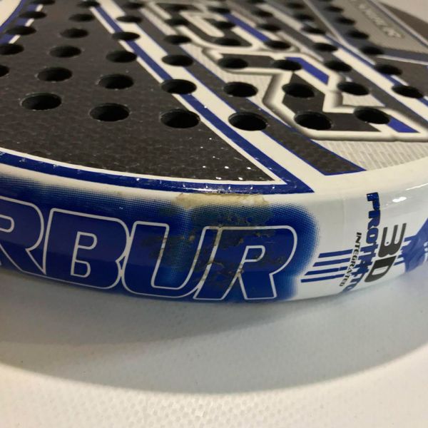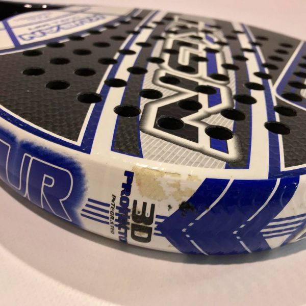 Control, precisión, fuerza y potencia se unen en la Kugan Karbur. Una pala equilibrada, que incorpora la tecnología Hexagon Rugged Surface para mayo efecto en tus golpeos. Esta pala de segunda mano esta en muy buenas condiciones. tiene restos de pegamento en las caras y un desconchado en el marco. Ofrece un increíble rendimiento, ideal para jugadores avanzados o intermedios.
