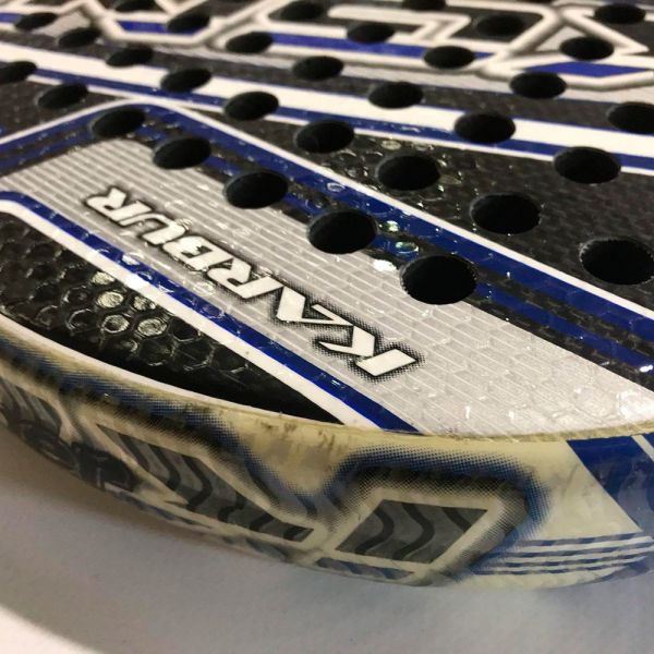 Esta pala de segunda mano esta en un magnífico estado. Tiene un pequeño desgaste en la zona del marc, en el protector adhesivo. Este desgaste del uso no influye a las prestaciones de la pala.