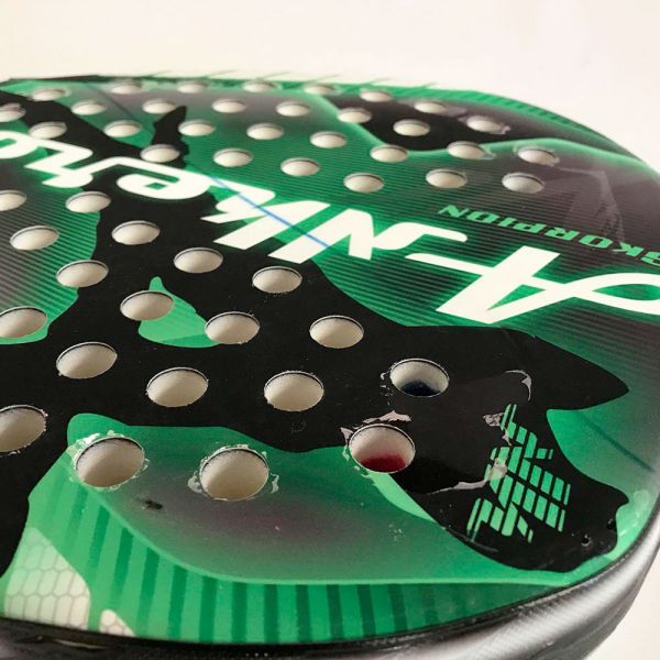 Potencia con una estética llamativa y salvaje, así se define la Akkeron Skorpion Verde. Una pala para jugadores internedios o avanzados que saben lo que buscan en la pista. Núcleo de EVA de alta densidad, asegurando una potente pegada con excelente salida de bola.