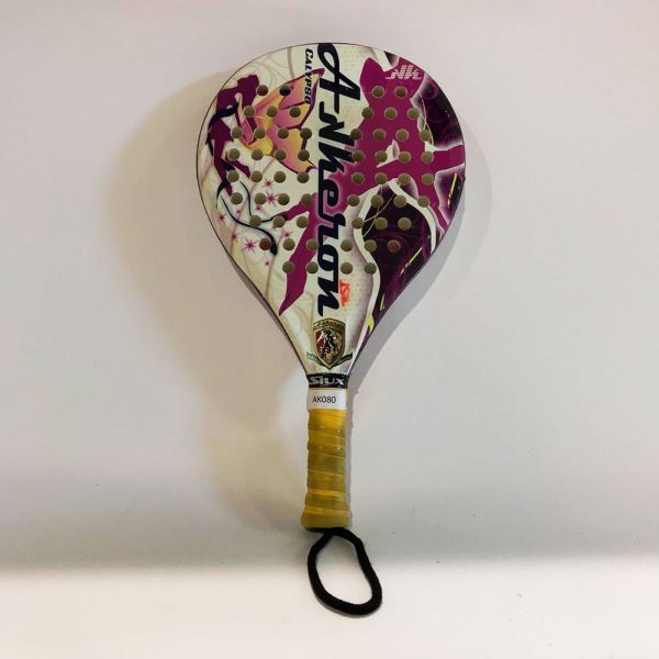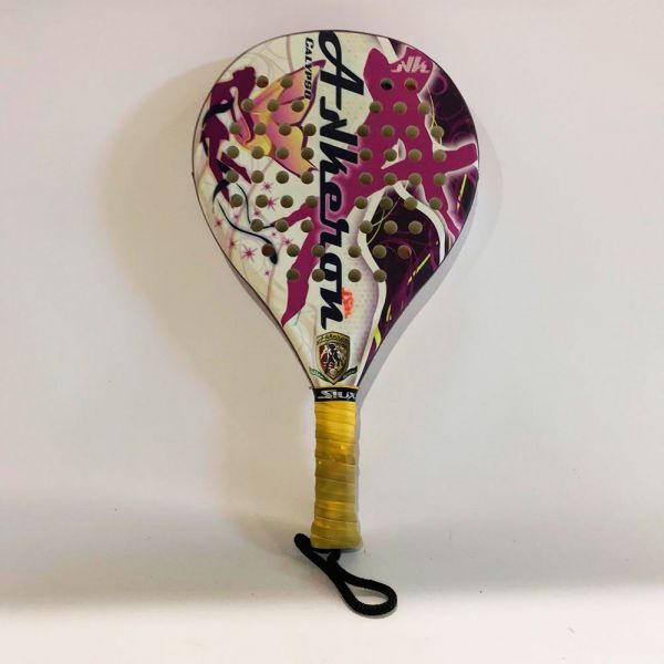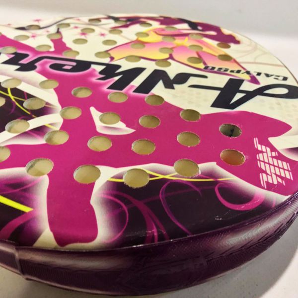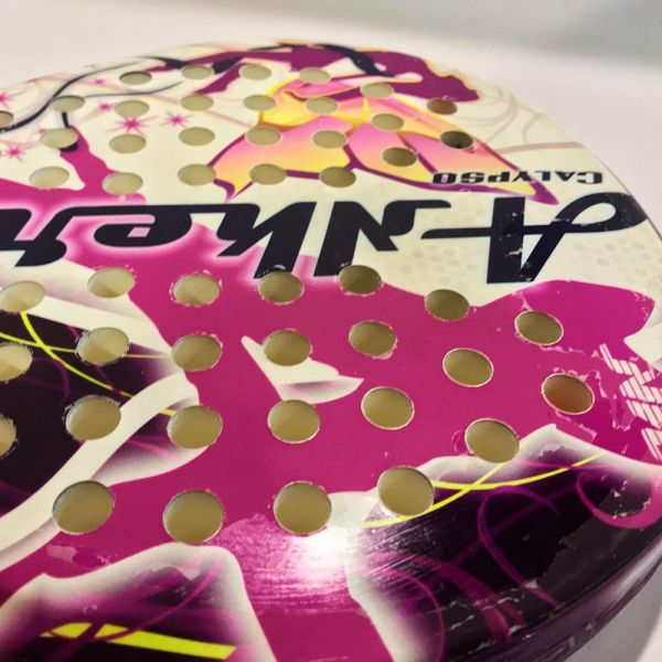 Control, potencia y diseño se funden en la Akkeron Calypso, una pala equilibrada con un diseño explosivo. Diseñada para jugadoras avanzadas o intermedias. Amplio punto dulce y buena salida de bola. Esta pala destinada a test ha sido usada, aunque se encuentra en muy buen estado. Cuenta con pequeños desconchones en la pintura de las caras. Excelente comportamiento en pista.