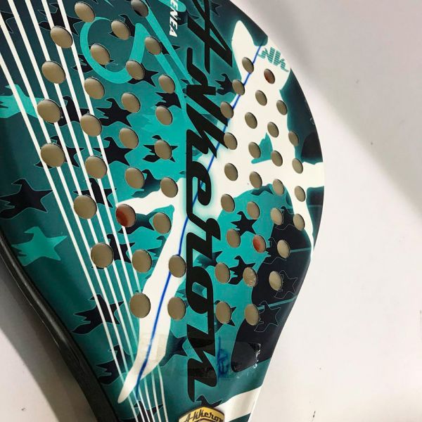 Enfrentate a cualquier rival con la Akkeron Athenea Turquesa, una pala de equilibrio con un gran control y potencia en la pista. Cómoda, ligera y manejable. Ideal para jugadoras de cualquier nivel. Esta pala de test no ha tenido mucho uso, por lo que se encuentra en muy buen estado. Tiene leves desconchones de pintura en una de las caras y restos de rotulador en ambas caras.