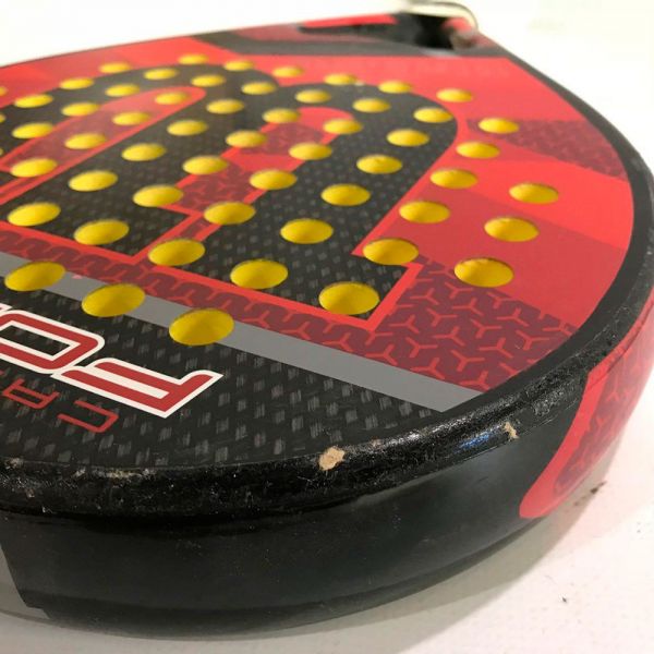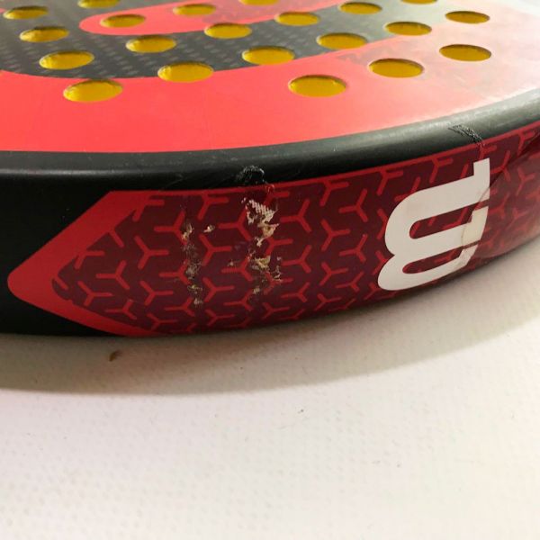 La Wilson Carbon Force Roja es una pala polivalante con un balance medio y forma híbrida entre redonda y lágrima. Cómoda, resistente y ligera. Se adapta a todo tipo de niveles. Esta pala de segunda mano se encuentra en buen estado, aunque posee algunos desconchados y saltos de pintura en el marco y las caras.