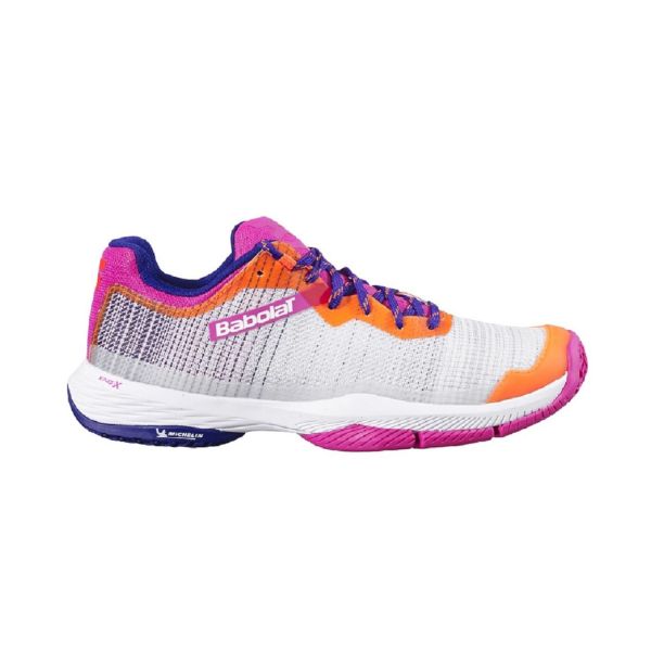 Descubre las altas prestaciones de estas zapatillas Babolat Jet Ritma en color gris con rosa para mujer compuestas con tejidos y tecnologías de alta calidad.