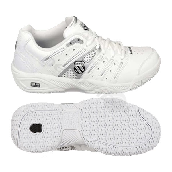 El sistema “Shock Spring” para amortiguación, una piel de gran calidad junto con la probadísima suela Omni de K-Swiss hacen de este modelo una magnífica elección como zapatilla específica para padel especialmente duradera por su suela.